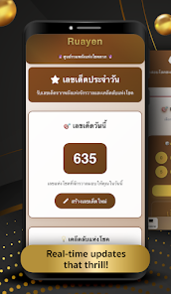 Uygulamanın öne çıkan özellikleri arasında, kullanıcıların sezgilerini test edebileceği bir Şans Numarası Oyunu, her gün yeni kozmik ilham veren şans numaraları, pozitiflik ve başarıyı çekmek için faydalı ipuçları ve kolay numara kontrol sistemi bulunmaktadır. Ruay-EN, tamamen eğlence ve ilham amaçlı tasarlanmış bir uygulamadır ve gerçek para ödülleri ya da bahis sistemleri içermez.